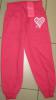 A lány szabadidő nadrág rózsaszínű, elöl két bevágott zsebbel. A jobb eleje zsebrészen nyomott szív motívumban a "MY GIRLS RED KIDS" fehérszínű felirat található. A nadrág dereka rászabott derékrésszel készült. A nadrág derekában szabadvégződésű, elvarrott szélű összehúzó-szalag van, mely egy ponton sincs a ruhához rögzítve. A termék nyersanyag-összetétele a bevarrt címke alapján: 80% pamut, 20% poliészter.