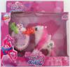 Karton dobozba csomagolt szárnyas lovacska oldalán nap és pöttyös virágminta rajzokkal. A termékhez egy darab zöld, és egy darab narancssárga csat tartozik.
